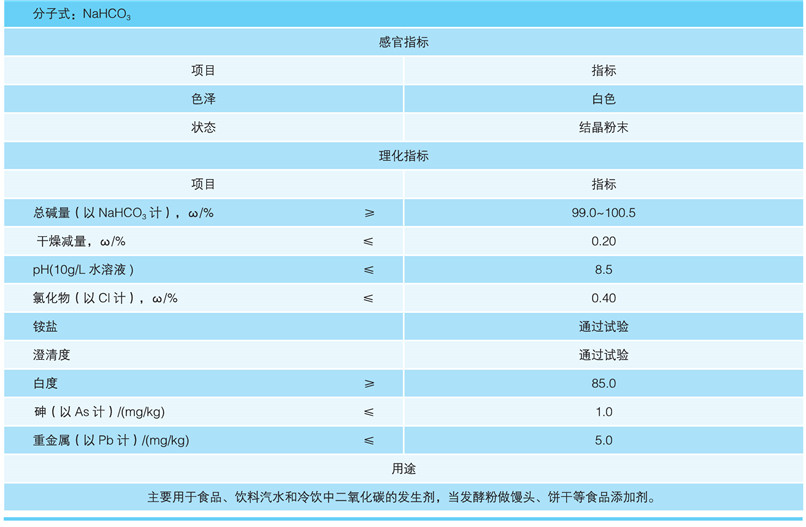 執(zhí)行標(biāo)準(zhǔn):GB/T1606-2008 工業(yè)碳酸氫鈉